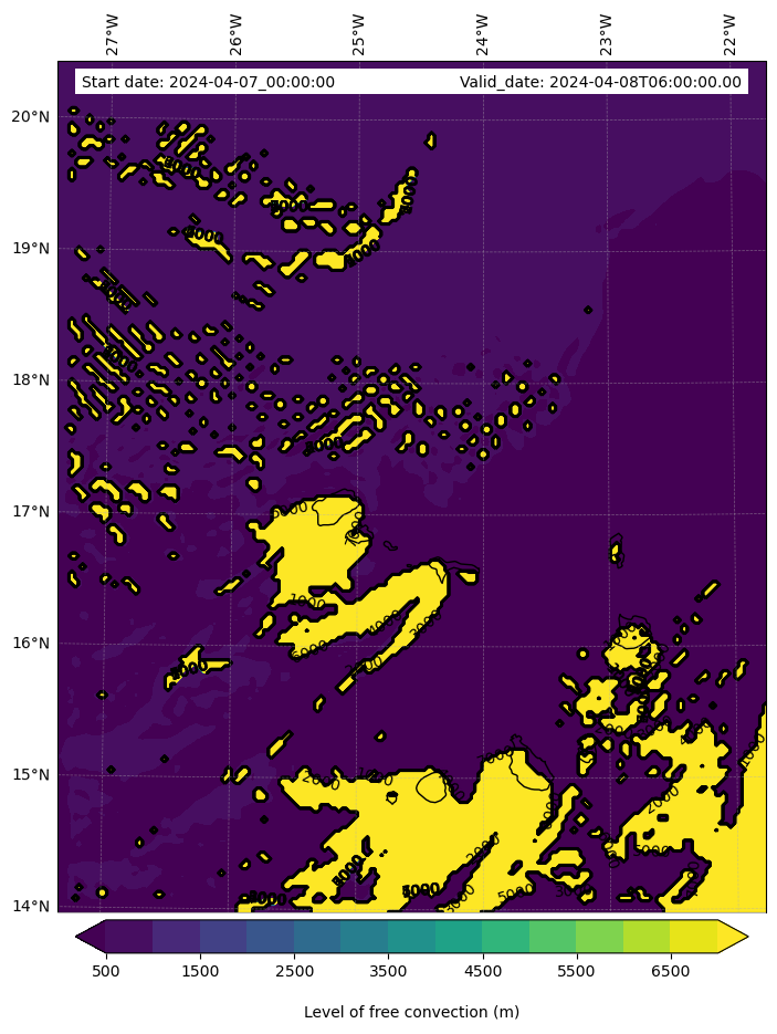 - Level of free convection (m)