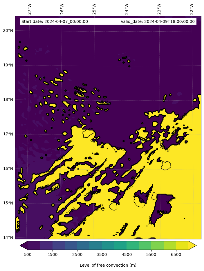 - Level of free convection (m)