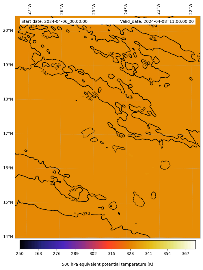 - Equivalent Potential Temperature (K)
