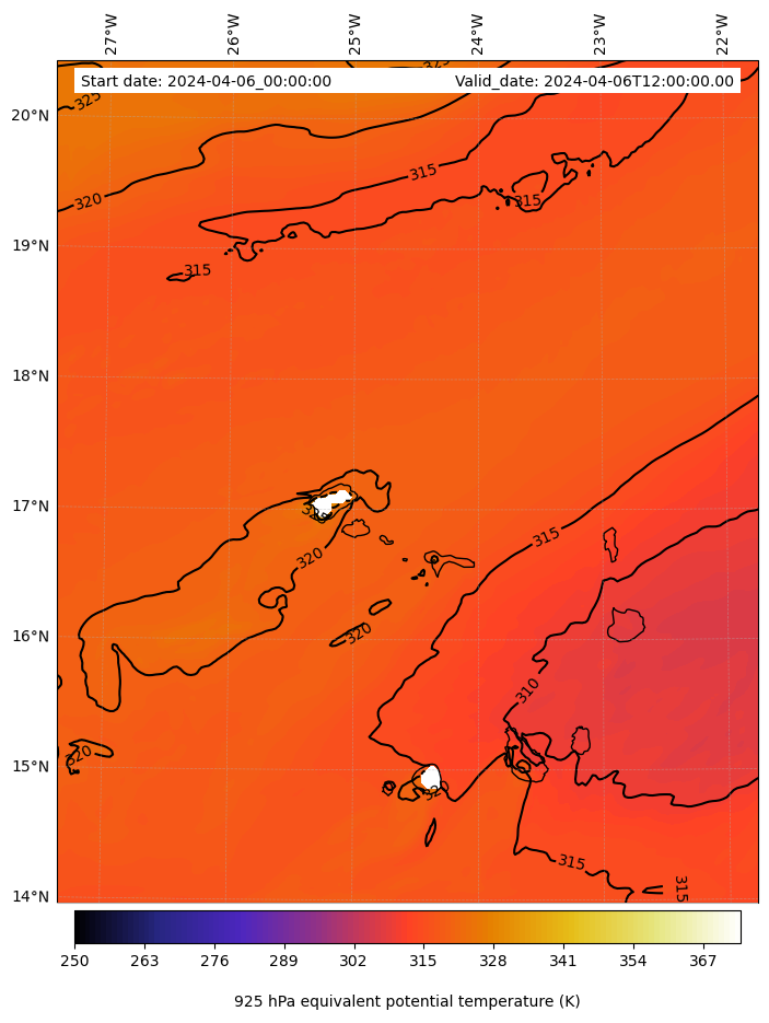 - Equivalent Potential Temperature (K)
