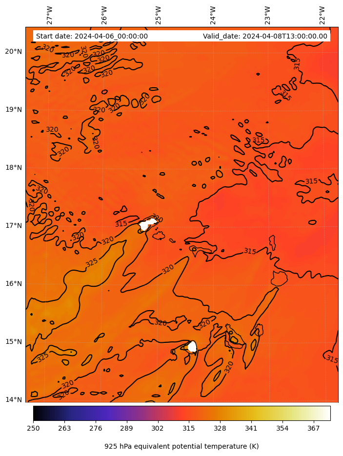 - Equivalent Potential Temperature (K)