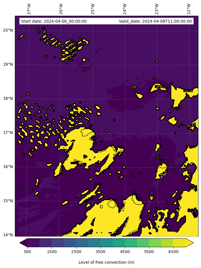 - Level of free convection (m)