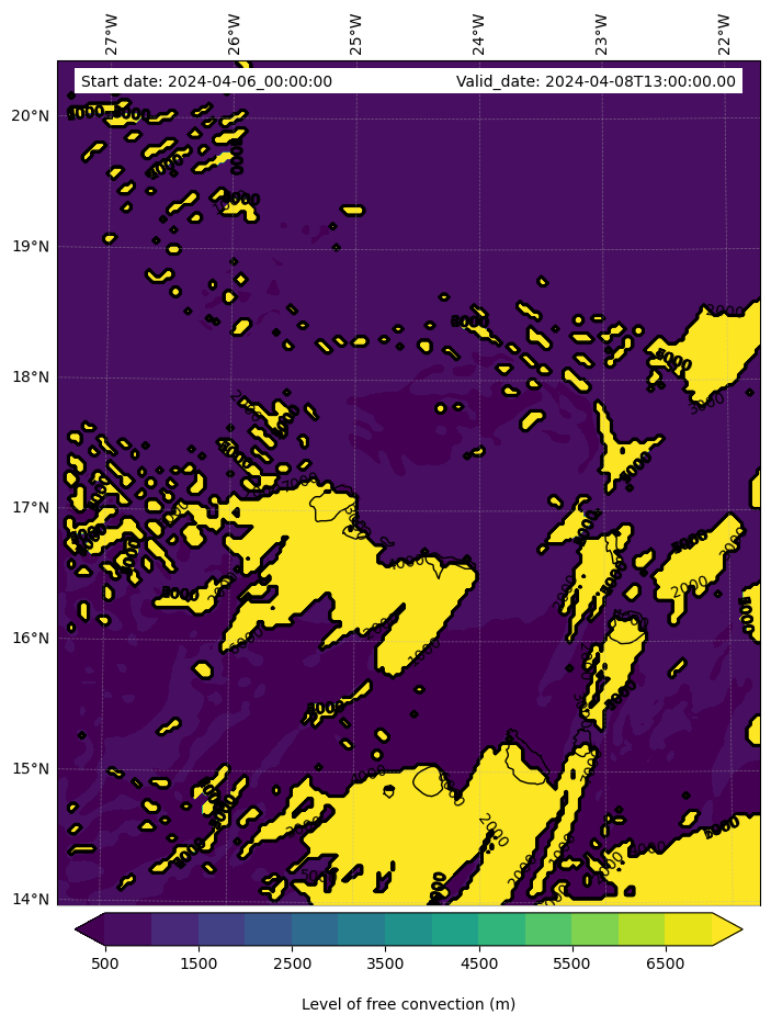 • Level of free convection (m)