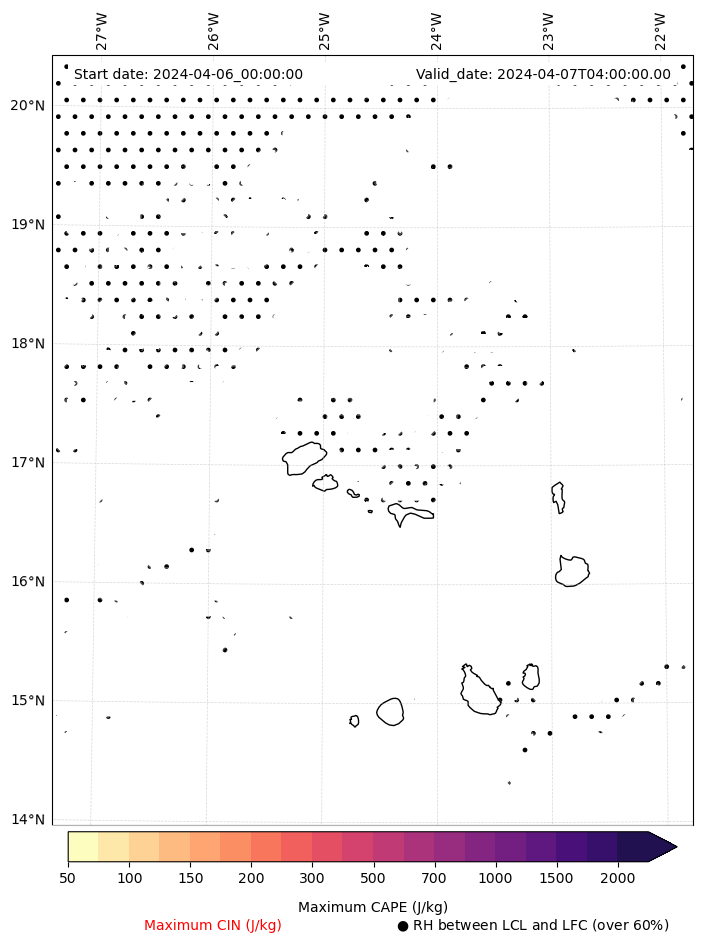 • Maximum CAPE (J/Kg)