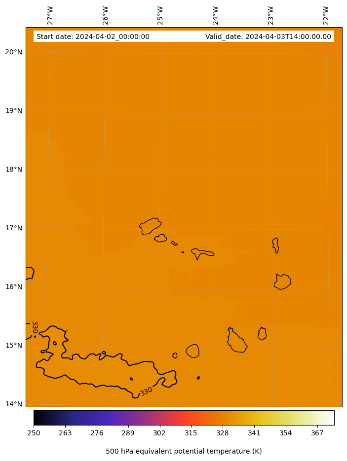 - Equivalent Potential Temperature (K)