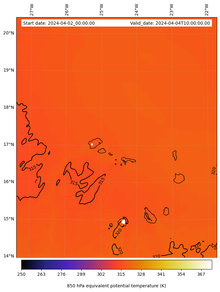- Equivalent Potential Temperature (K)