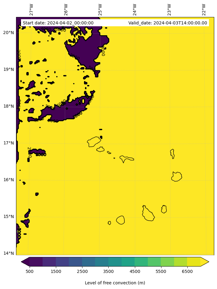 - Level of free convection (m)
