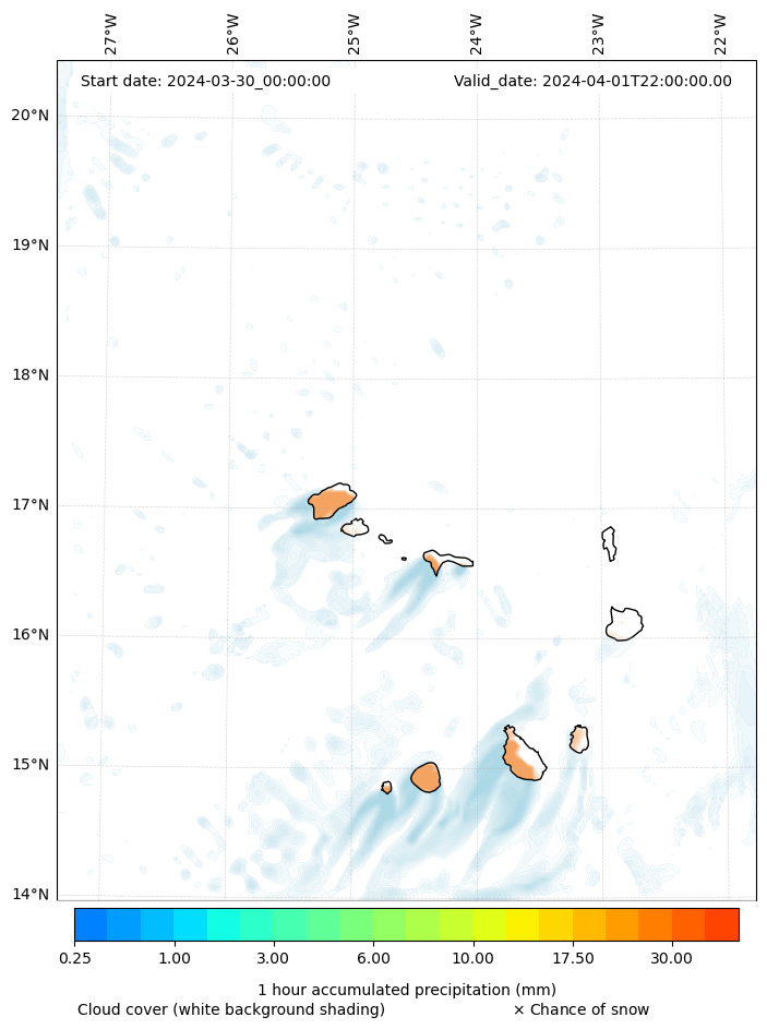 - Snow mixing ratio (g kg¯¹)