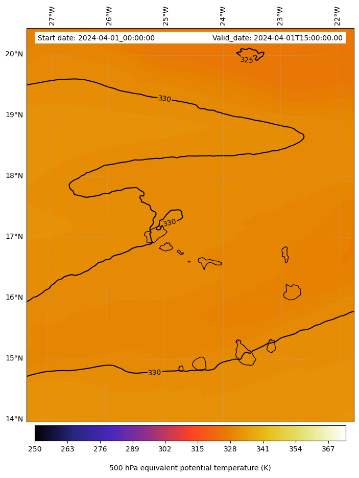 - Equivalent Potential Temperature (K)