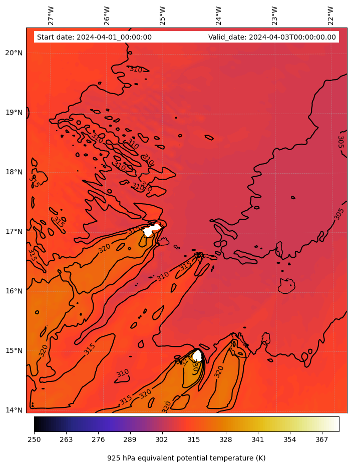- Equivalent Potential Temperature (K)