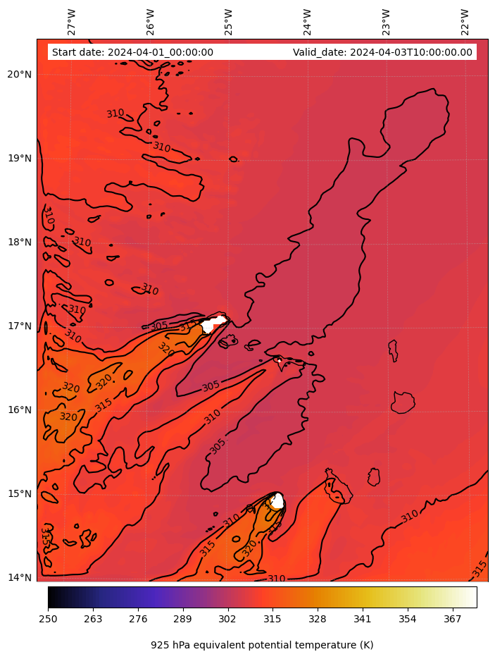 - Equivalent Potential Temperature (K)