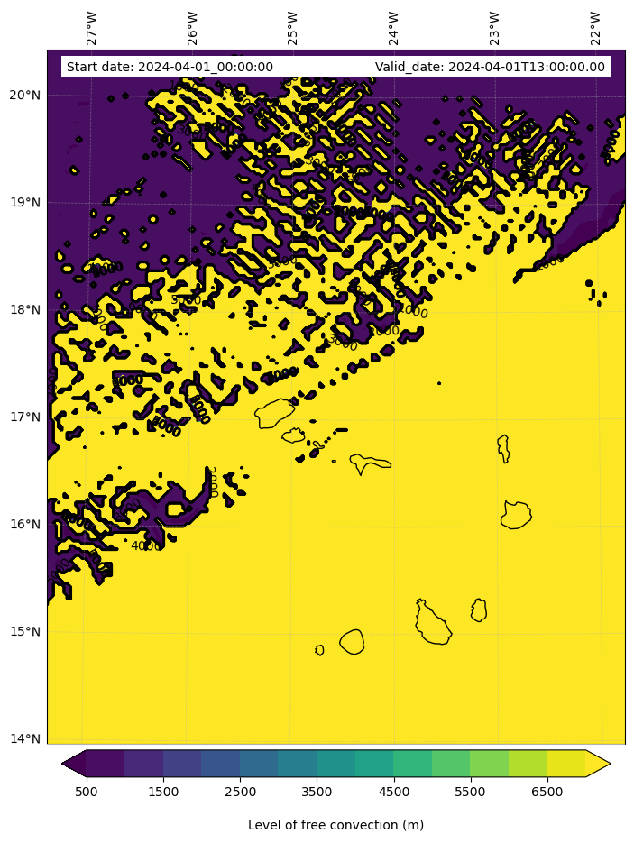 • Level of free convection (m)
