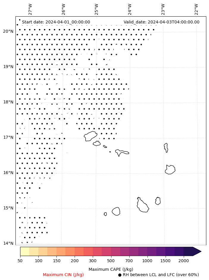 • Maximum CAPE (J/Kg)