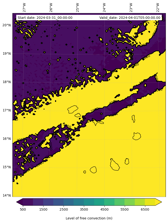 • Level of free convection (m)
