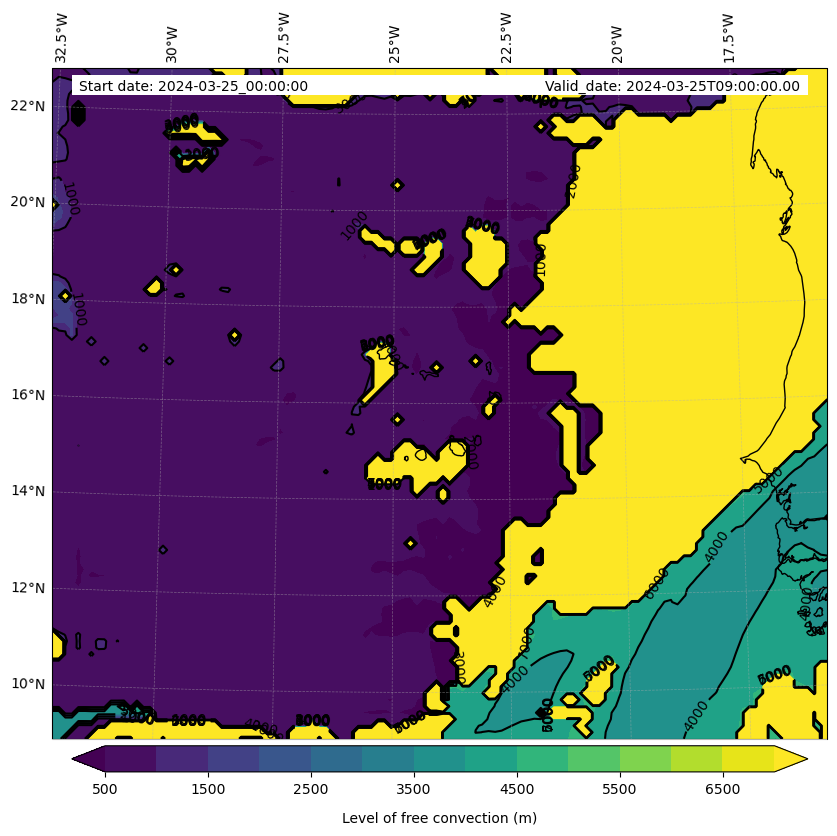 - Level of free convection (m)