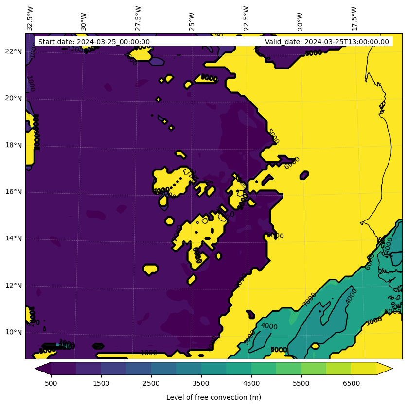 - Level of free convection (m)