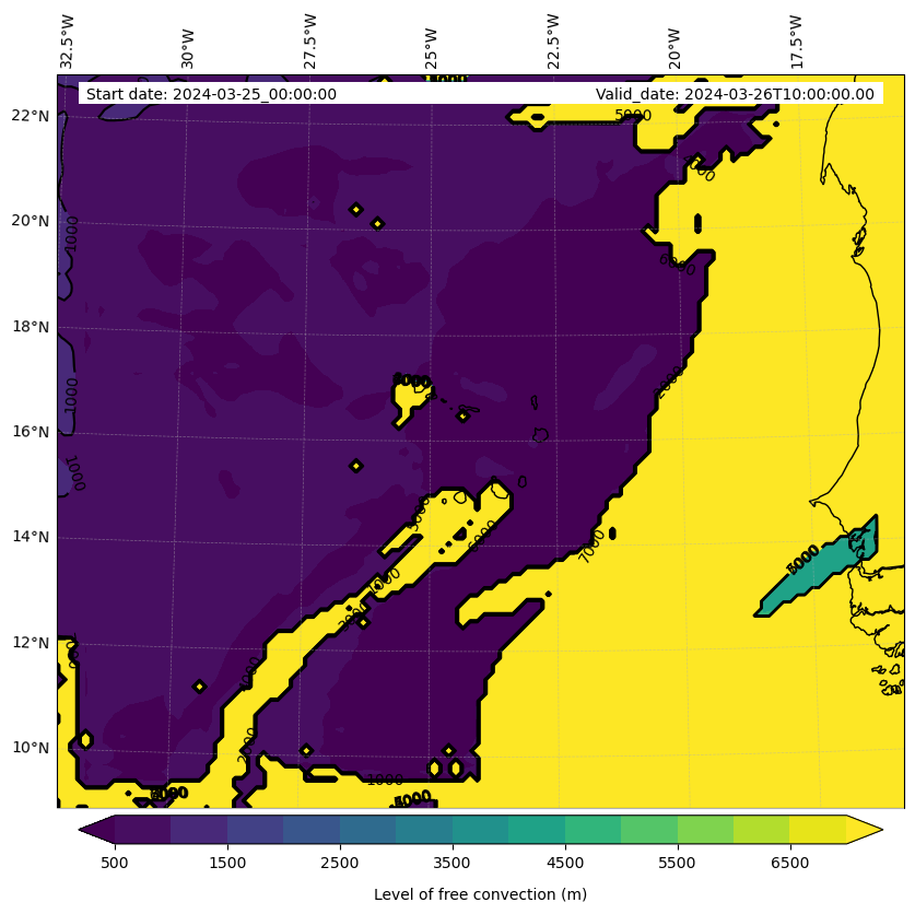 - Level of free convection (m)