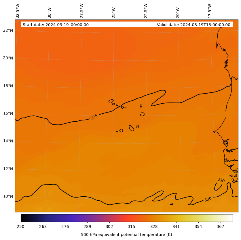 - Equivalent Potential Temperature (K)