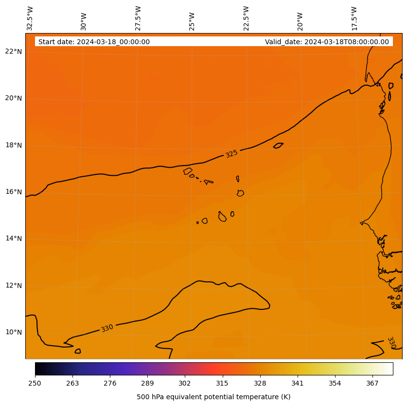 - Equivalent Potential Temperature (K)