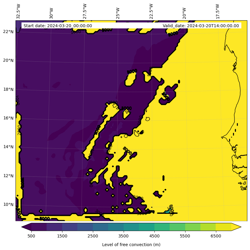 - Level of free convection (m)
