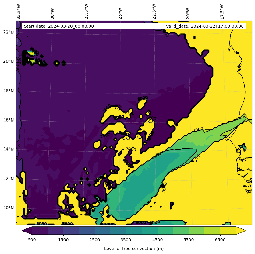 - Level of free convection (m)