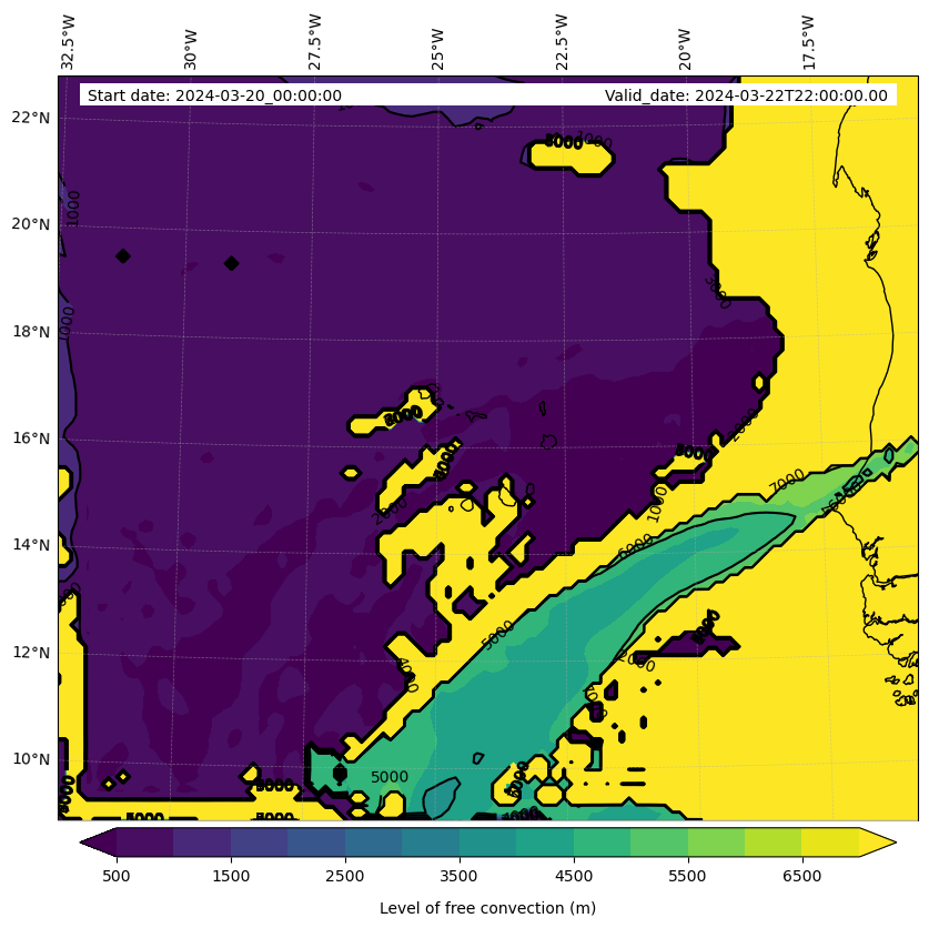 - Level of free convection (m)