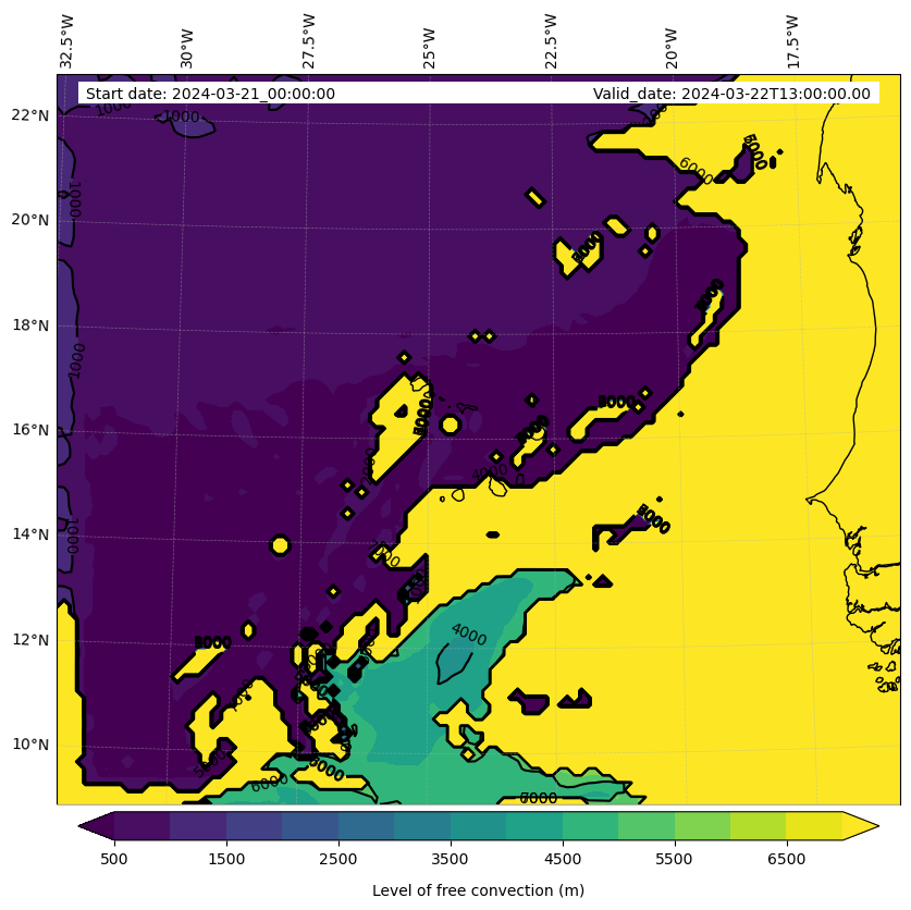- Level of free convection (m)