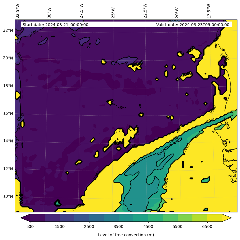 • Level of free convection (m)