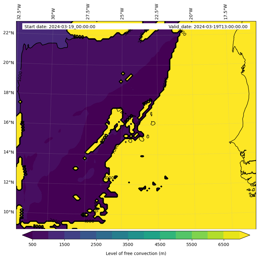 - Level of free convection (m)
