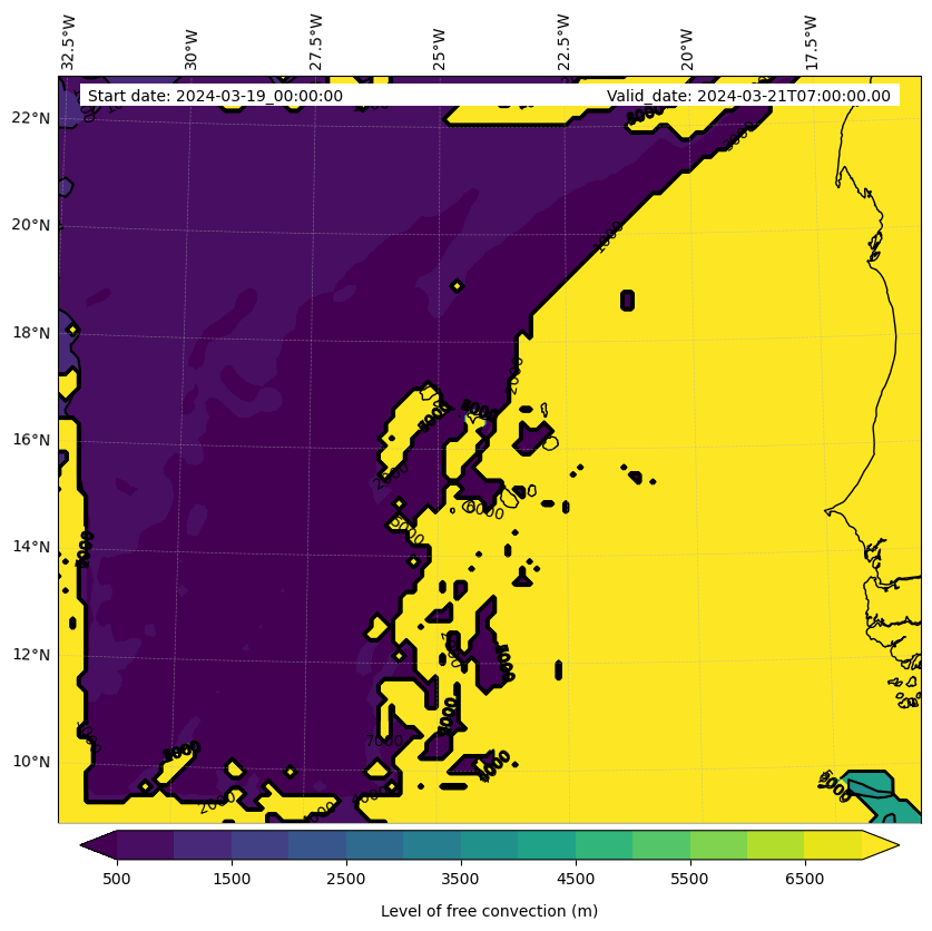 - Level of free convection (m)