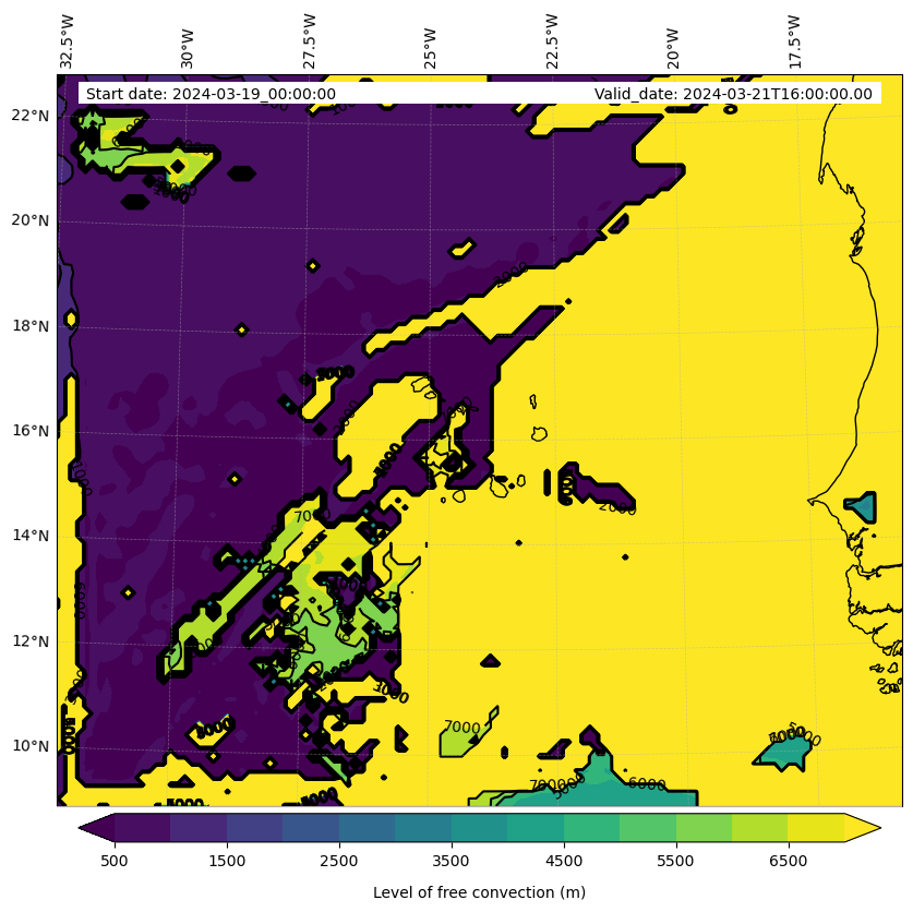 - Level of free convection (m)
