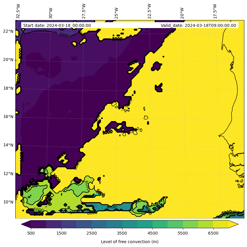 - Level of free convection (m)