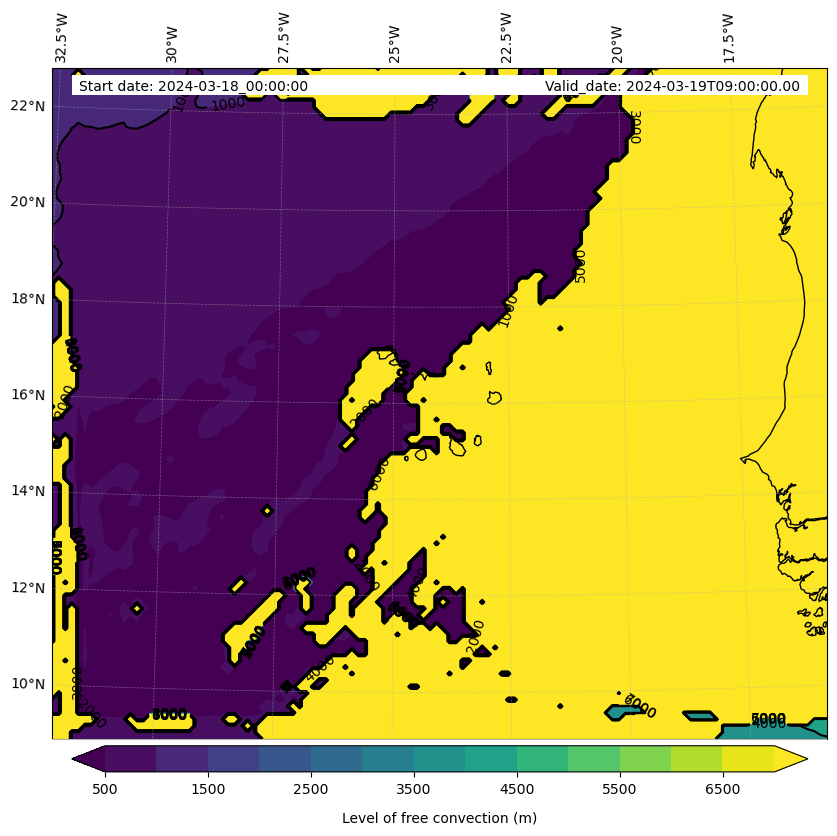 • Level of free convection (m)