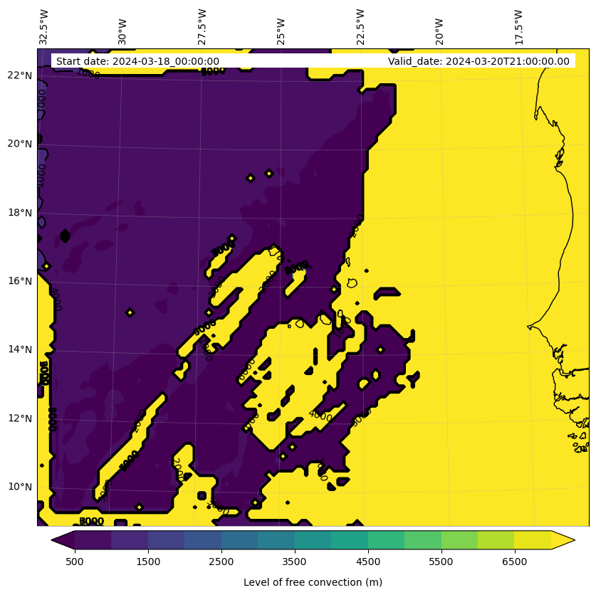 - Level of free convection (m)