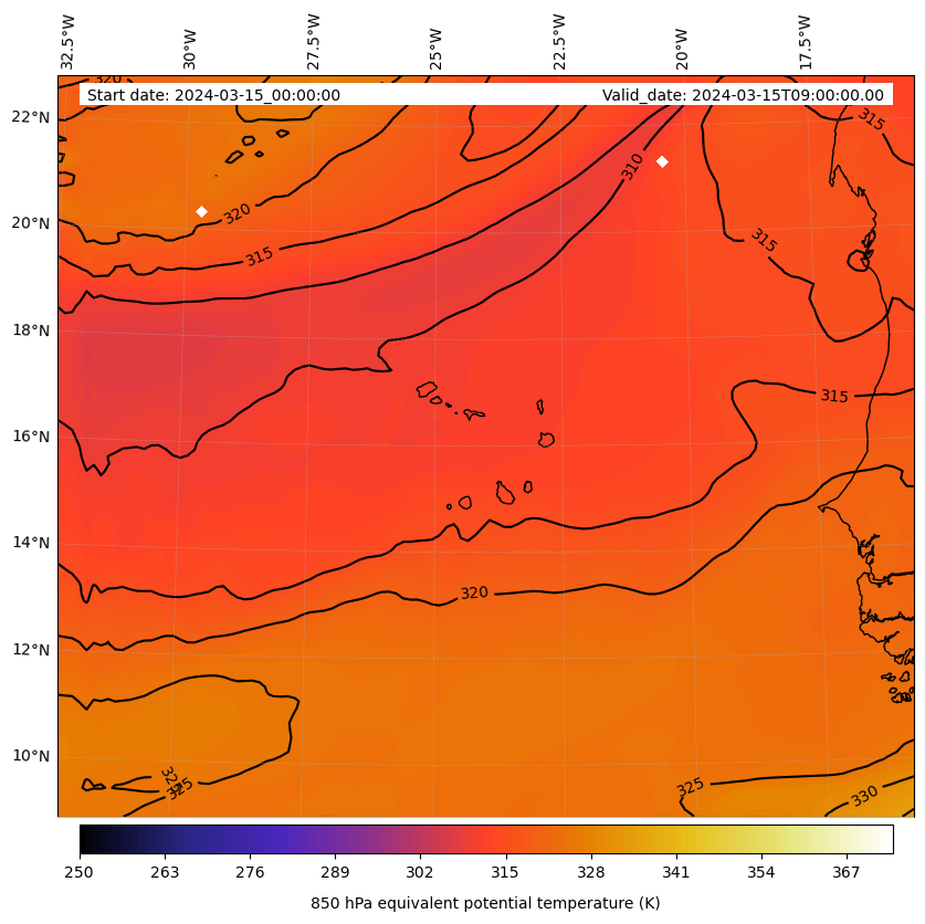 - Equivalent Potential Temperature (K)