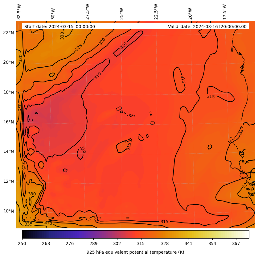 - Equivalent Potential Temperature (K)