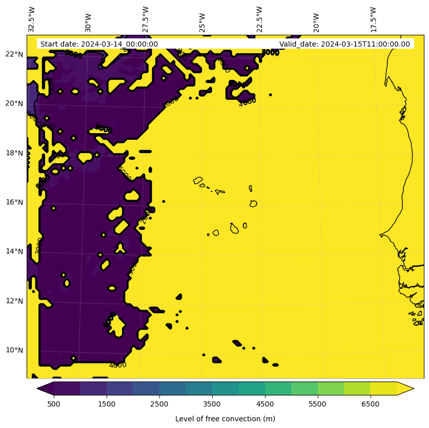 • Level of free convection (m)