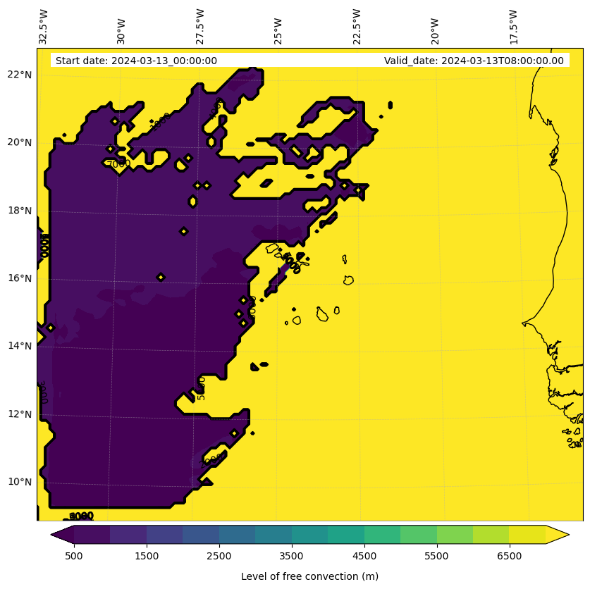 - Level of free convection (m)