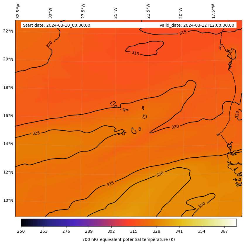 - Equivalent Potential Temperature (K)