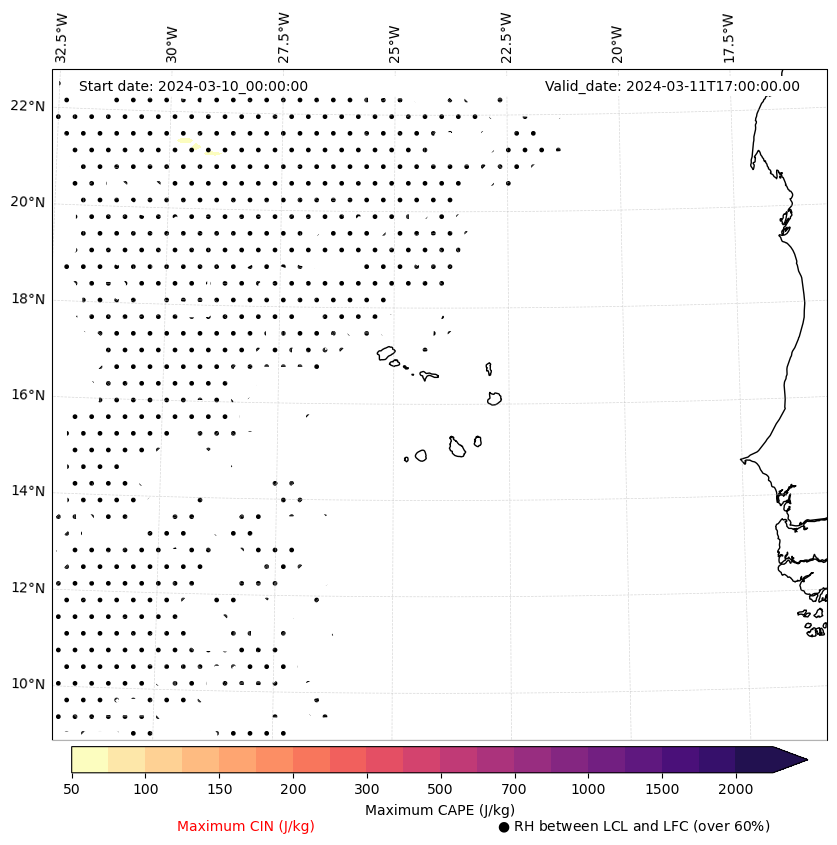 • Maximum CAPE (J/Kg)