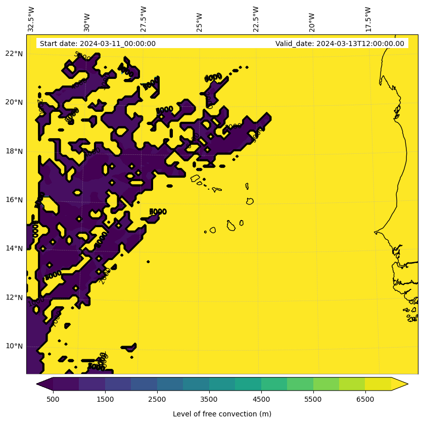 - Level of free convection (m)