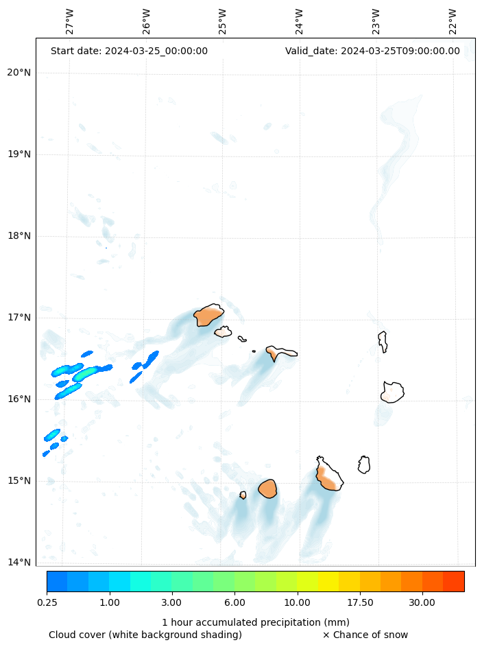 - Snow mixing ratio (g kg¯¹)