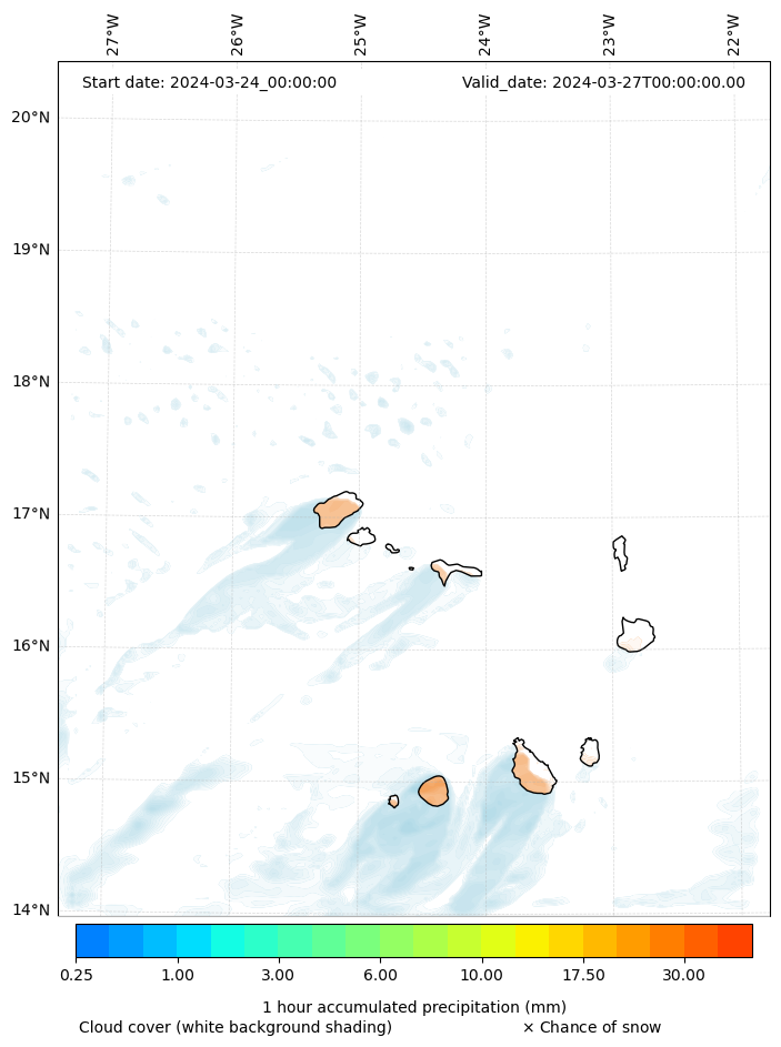- Snow mixing ratio (g kg¯¹)