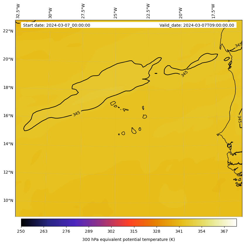 - Equivalent Potential Temperature (K)- 300 hPa