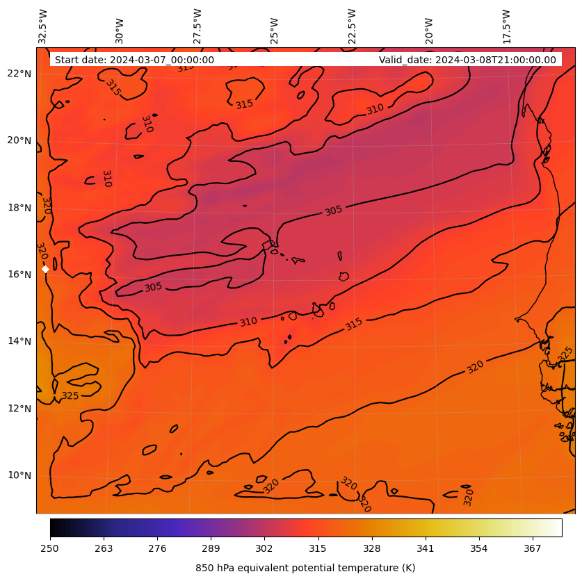 - Equivalent Potential Temperature (K)