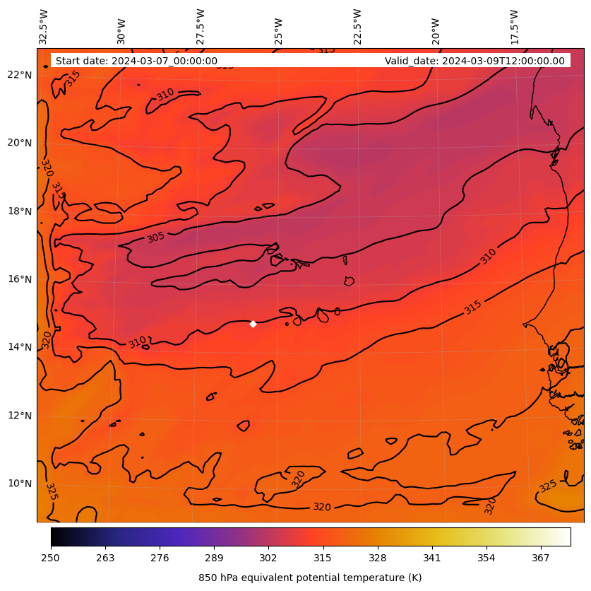 - Equivalent Potential Temperature (K)