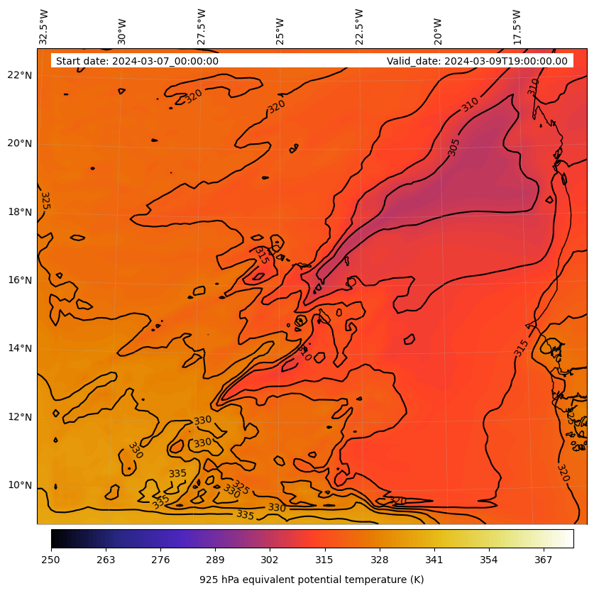 - Equivalent Potential Temperature (K)