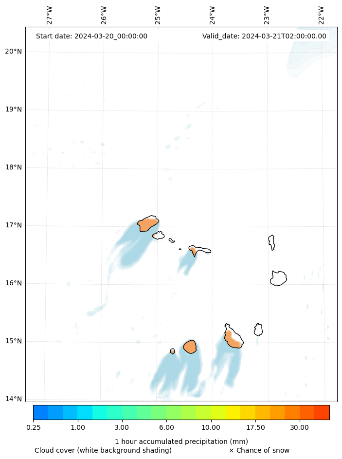 - Snow mixing ratio (g kg¯¹)