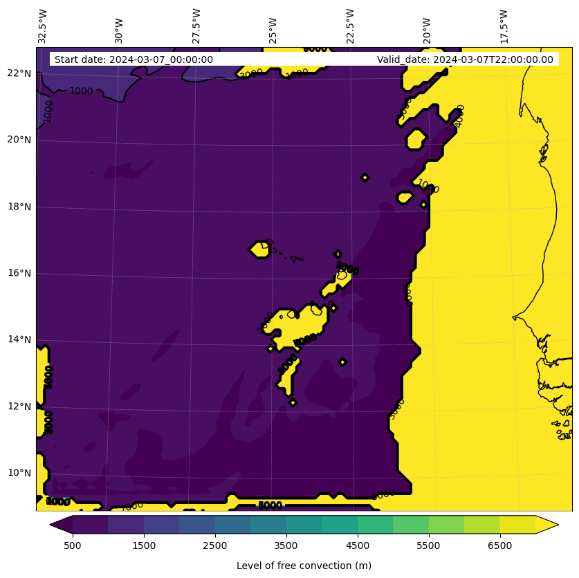 - Level of free convection (m)