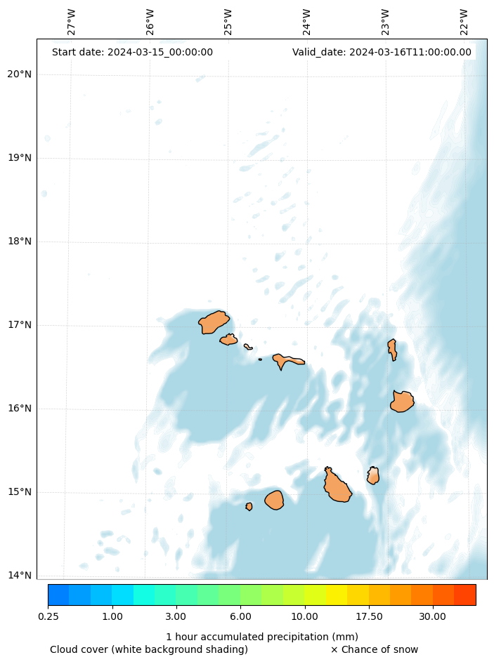 - Snow mixing ratio (g kg¯¹)
